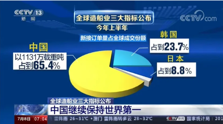 全球權威航運造船機構公布的最新數據顯示,今年上半年,全球造船業(yè)三大指標,中國再次領先,繼續(xù)保持世界第一的紀錄。