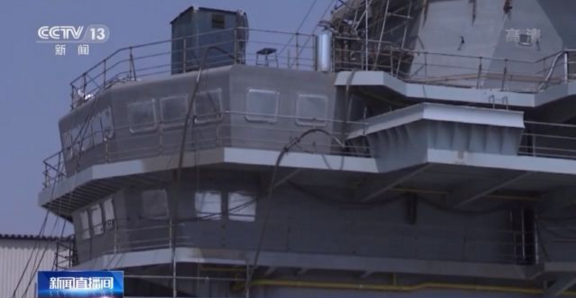 總臺央視記者李寧:這艘就是我國第一艘國產航母山東艦,它是2019年12月17日正式入列的,它的高度是二十多層樓那么高,長度三百多米,整個面積能達到三個足球場那么大。