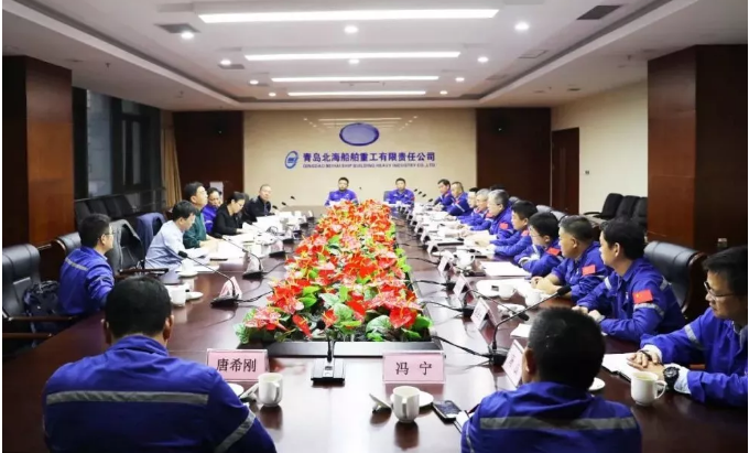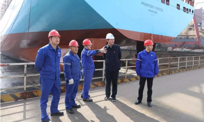 調研期間,楊磊實地考察了北船重工青島武船、造船碼頭、聯合廠房、修船分廠、造船大塢,了解了北船重工發展歷程、生產經營情況、黨建工作情況以及主題教育開展情況,并參加了北船重工領導班子主題教育調研成果交流會。