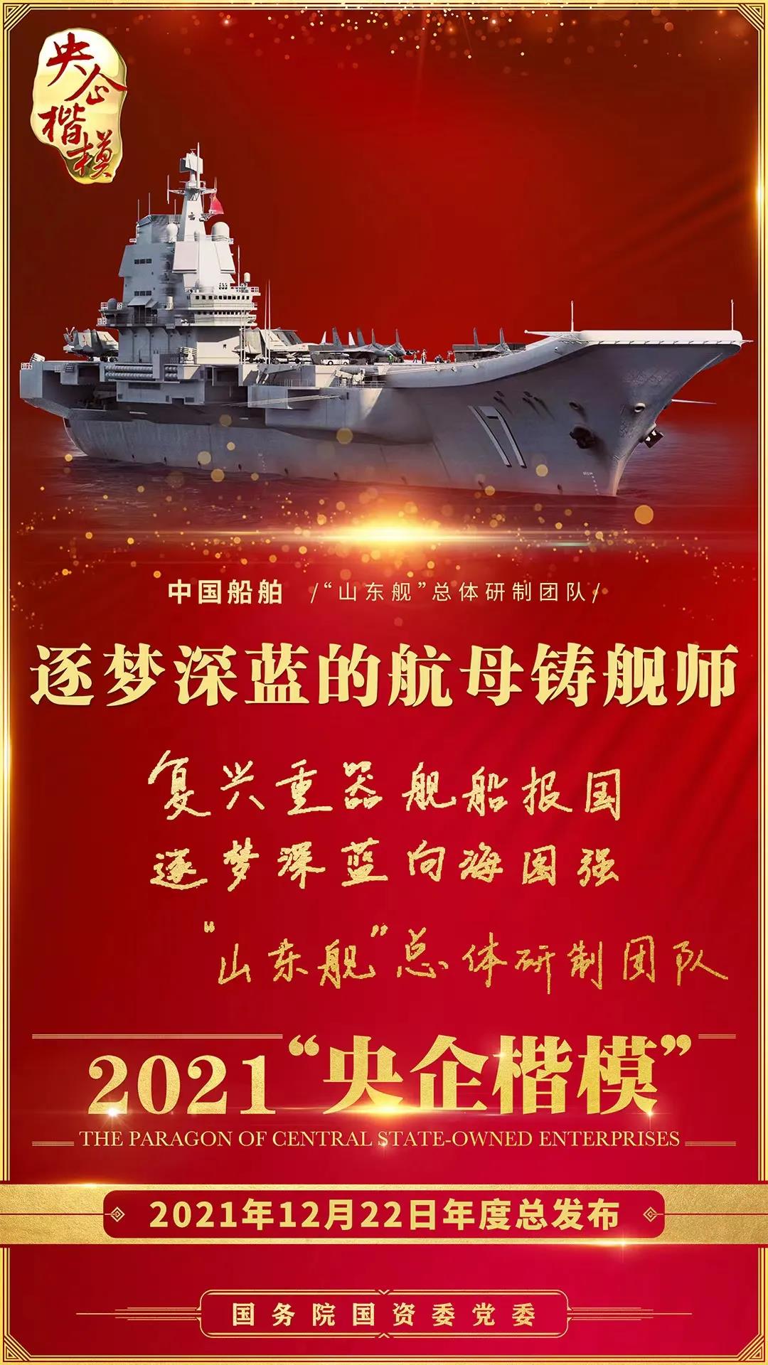 12月22日,國務(wù)院國資委黨委舉行2021年第二批“央企楷模”發(fā)布暨年度總發(fā)布儀式,中國船舶“山東艦”總體研制團(tuán)隊(duì)榮獲2021年“央企楷模”榮譽(yù)稱號(hào)。繼“奮斗者”號(hào)萬米載人潛水器研發(fā)團(tuán)隊(duì)獲評(píng)2020年“央企楷模”榮譽(yù)稱號(hào)后,中國船舶集團(tuán)再獲此殊榮。