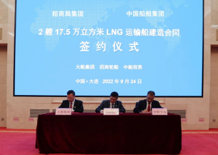 9月24日,中國船舶集團旗下大船集團聯合中船貿易為招商局集團旗下招商輪船建造的30萬噸VLCC “新伊敦”輪正式命名交付。同日,大船集團聯合中船貿易成功承接了招商輪船2艘17.5萬立方米大型LNG運輸船新造項目。中國船舶集團黨組副書記、總經理楊金成,黨組成員、副總經理孫偉,招商局集團黨委書記、董事長繆建民,黨委副書記、總經理胡建華,紀委書記、董事段湘暉,黨委委員、副總經理李百安出席儀式??娊駷樾麓?,楊金成、胡建華在儀式上致辭,段湘暉為新船砍纜。