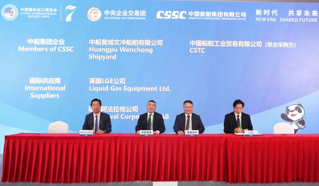 中國船舶集團有限公司黨組成員、副總經理盛紀綱應邀參加第七屆進博會暨虹橋國際經濟論壇開幕式,出席11月6日下午舉行的第七屆進博會國資委中央企業交易團中國船舶交易分團采購集中簽約儀式并致辭。