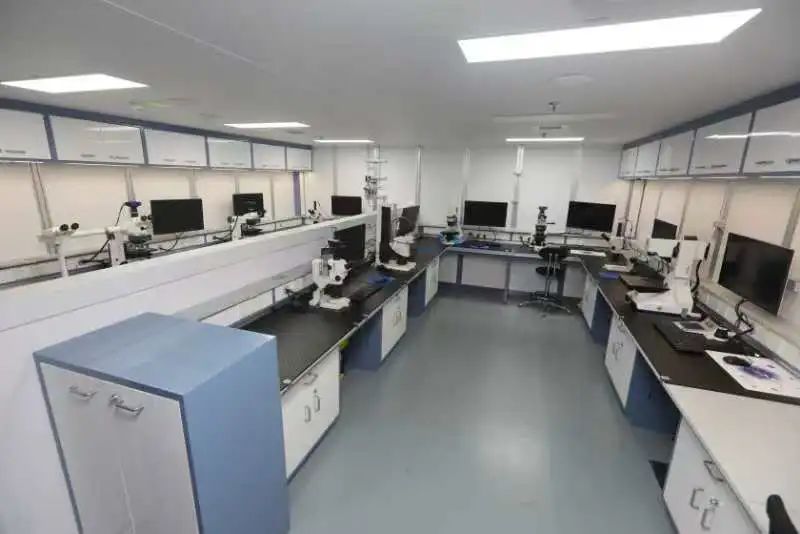 船載實(shí)驗(yàn)室的布局合理與否,將直接影響到巖心處理的效率。研發(fā)團(tuán)隊(duì)從巖心處理流程入手優(yōu)化實(shí)驗(yàn)室布局,縮短巖心轉(zhuǎn)運(yùn)的時(shí)間和距離,實(shí)現(xiàn)了冷凍巖心的溫控切割和存儲(chǔ)無(wú)縫對(duì)接,各實(shí)驗(yàn)室實(shí)現(xiàn)了部分功能共享,優(yōu)化了實(shí)驗(yàn)流程,大幅提升了實(shí)驗(yàn)效率。