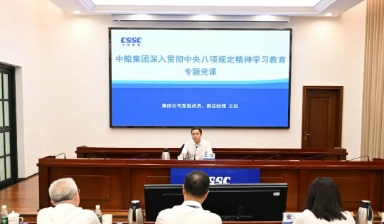 中船集團黨組成員講授深入貫徹中央八項規定精神學習教育專題黨課