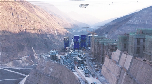 正在施工中的白鶴灘水電站主壩區域