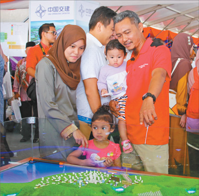 聽聞東海岸鐵路項目開工的消息,9日上午,許多彭亨州當?shù)鼐用裆碇?jié)日里的喜慶服裝,扶老攜幼趕來參加儀式,能容納5000人的現(xiàn)場被擠得滿滿當當。在開工儀式特別設(shè)置的展示區(qū),他們在鐵路信息介紹展板和模擬線路沙盤旁駐足觀看、拍照留念,喜悅之情溢于言表。