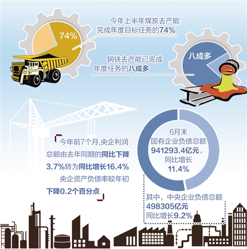 國(guó)務(wù)院常務(wù)會(huì)議披露的數(shù)據(jù)顯示,今年前7個(gè)月央企利潤(rùn)總額由去年同期的同比下降3.7%轉(zhuǎn)為同比增長(zhǎng)16.4%,央企資產(chǎn)負(fù)債率較年初下降0.2個(gè)百分點(diǎn)。