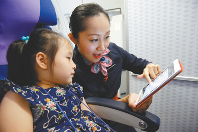 乘務(wù)員利用機上無線網(wǎng)絡(luò)幫助無陪小旅客與家人空地聯(lián)絡(luò)。(資料圖片)