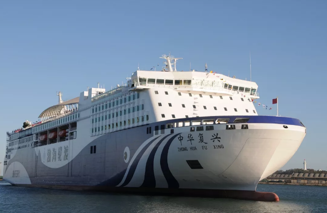 ????“中華復(fù)興”號總長212米,型寬28.6米,總噸4.4萬,裝載車道長度3070米,3層車輛艙,服務(wù)航速18.8節(jié),最大續(xù)航力5000海里。 擁有雙套船舶動(dòng)力系統(tǒng)、雙電源系統(tǒng)、雙套滅火系統(tǒng),有良好的設(shè)計(jì)穩(wěn)性和船體強(qiáng)度,滿足減振降噪、節(jié)能環(huán)保等最新國際規(guī)范要求。 載客定額為1689人,客房全部采用等級艙位,設(shè)有大型多功能演藝廳、兒童游樂區(qū)、購物中心、影院等娛樂休閑場所,集旅行、休閑、娛樂于一體,為旅客帶來郵輪般體驗(yàn)。