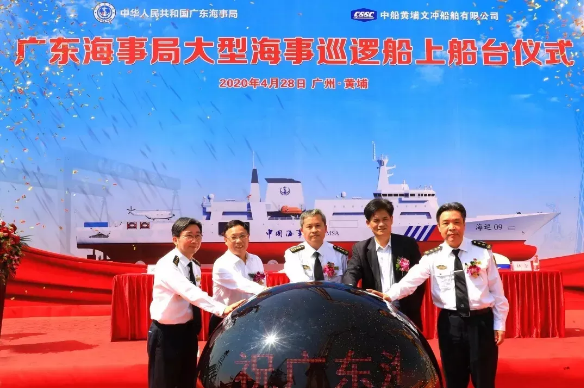 △ 4月28日,七〇一所設(shè)計的廣東海事局大型海事巡邏船上船臺。