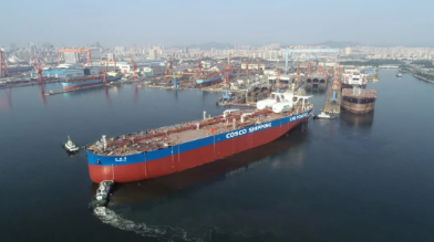 日前,中國船舶集團旗下大船集團生產(chǎn)捷報頻傳,實現(xiàn)一船命名、一船出塢。30.7萬噸超大型油船(VLCC)“中船湖南”號命名,全球首艘雙燃料超大型油船出塢。