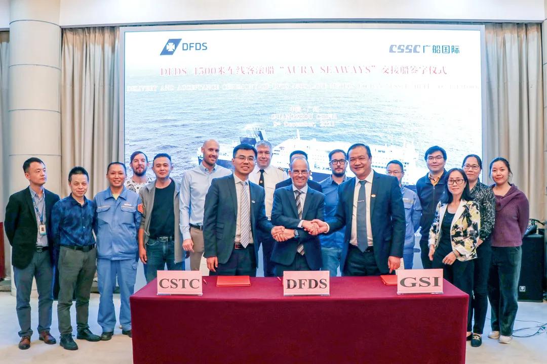 12月9日,由中國船舶集團(tuán)旗下廣船國際聯(lián)合中船貿(mào)易為北歐最大的航運(yùn)和物流公司,丹麥DetForenede Dampskibs-Selskab(簡(jiǎn)稱:DFDS)航運(yùn)公司建造的600客/4500米車道豪華客滾船首制船實(shí)現(xiàn)“云交付”。