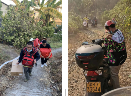 在重慶40多度的高溫天氣下,他們有的為當(dāng)?shù)鼐栀浀V泉水和食物等物資;有的加入挖隔離帶的隊伍中;有的在后方將物資運(yùn)送到統(tǒng)一堆放點;山勢陡峭,有的則是成為“摩托幫”,將物資送到最前線。