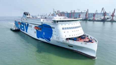 5月30日下午,中國(guó)船舶集團(tuán)旗下廣船國(guó)際聯(lián)合中船貿(mào)易為“一帶一路”沿線國(guó)家意大利的MOBY Line航運(yùn)公司建造的全球最大豪華客滾船——2500客/3800米車道豪華客滾船2號(hào)船試航凱旋。試航僅用93小時(shí),不到4天。項(xiàng)目經(jīng)理曹繼飛說(shuō):“這個(gè)紀(jì)錄,估計(jì)我們以后也很難打破了。”