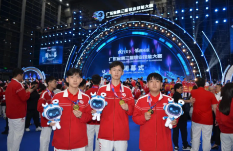 王建華(焊接-世賽選拔廣東省賽第1名,左)、歐雙朋(焊接-國(guó)賽精選廣東省賽第1名,中)、吳志平(建筑金屬構(gòu)造-世賽選拔廣東省賽第1名,右)