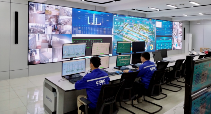 信息賦能,生產與數字技術深度融合。建立兩級運營指揮中心,重要產線現場實時監控,關鍵經濟指標及時更新;水處理產業建成船舶配套領域首個智能工廠,風電產業打造成具有行業特色成型智能制造車間。