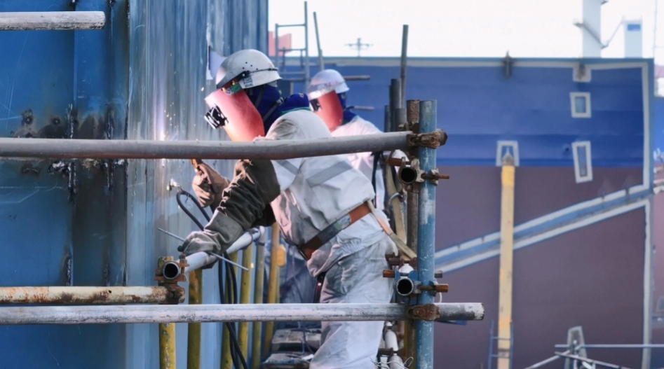 如今的江南造船寬敞明亮、干凈整潔,車間里、船塢內、碼頭上……身著不同顏色工裝的作業人員在各自崗位上有序地工作。廠區內懸掛著顯眼的“擔高質量發展的先行者 當傳統制造業的顛覆者”標語,以造船界優秀前輩命名的廠區道路兩旁懸掛著江南造船科創大會的優秀獲獎者們的海報,新舊交替的一代代造船界前輩激勵著每一位江南人不斷向前。