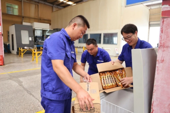 中南裝備通過減少高溫時間段工作時間,結合生產特點和具體條件彈性安排各崗位作息時間,加強安全巡查和夏季安全生產“六防”檢查,發(fā)放防暑降溫藥品物資,設置防暑降溫室、開展防暑降溫應急演練等,多形式開展“送清涼”,為一線員工撐起關愛“遮陽傘”。