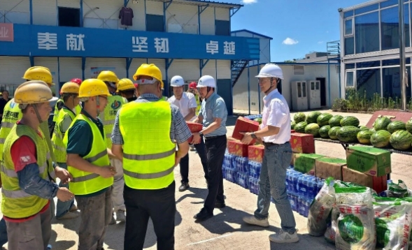 中船國際工程在項(xiàng)目現(xiàn)場開展綜合檢查工作,并向堅(jiān)守崗位的項(xiàng)目員工及勞務(wù)隊(duì)伍送上防暑降溫物資,叮囑大家要科學(xué)合理安排作業(yè)時間,切實(shí)做好防暑降溫措施。
