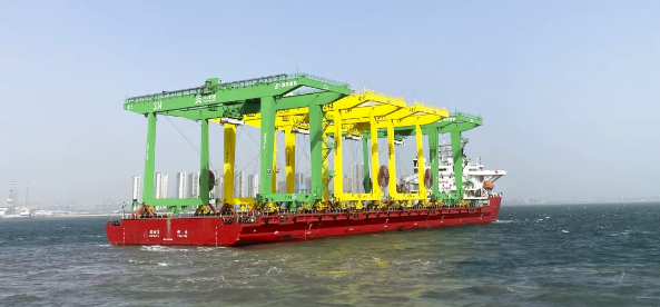 近日,武漢船機(jī)海西重機(jī)公司為天津港北疆港區(qū)C段智能化集裝箱碼頭一期工程承制的第五批4臺自動(dòng)化軌道吊滾裝發(fā)往天津港。