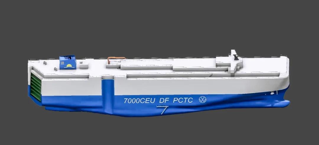 該型船可裝載7000輛汽車,采用先進(jìn)的天然氣(LNG)/燃油雙燃料推進(jìn)系統(tǒng)設(shè)計(jì),可在3種燃料模式下航行,續(xù)航力最高可達(dá)15,000海里。配置了高壓岸電系統(tǒng),采取了減阻防污漆等各類節(jié)能措施,EEDI(能效營(yíng)運(yùn)指標(biāo))滿足國(guó)際海事組織最新的第二階段(phaseⅡ)要求,是一艘節(jié)能環(huán)保高效的汽車運(yùn)輸船。