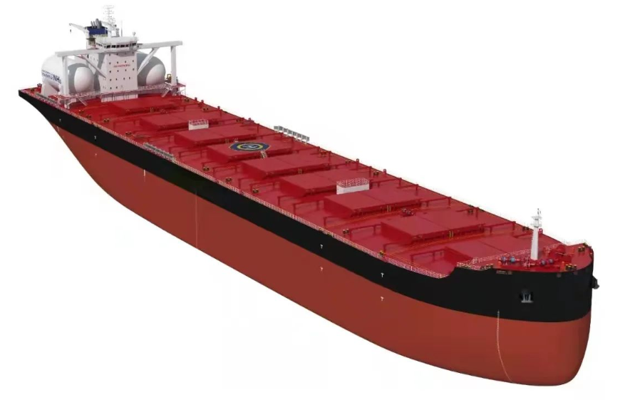 為滿足船東在大型散貨船上應用氨燃料的迫切需求,青島北海造船的技術(shù)設計團隊積極作為,在結(jié)構(gòu)優(yōu)化、總體研究、燃料艙選型與布置、氨燃料系統(tǒng)研究、危險源識別分析等方面做了大量工作,高效完成了船型設計方案,并滿足了美國船級社(ABS)“氨燃料預留2級(結(jié)構(gòu))”要求,可在未來轉(zhuǎn)換為氨燃料運營。
