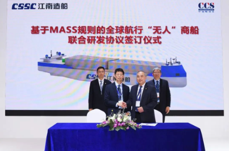 此外,與中國船級社簽訂面向MASS(海上自主水面船舶)規(guī)則應(yīng)用的全球航行“無人”商船聯(lián)合研發(fā)協(xié)議。