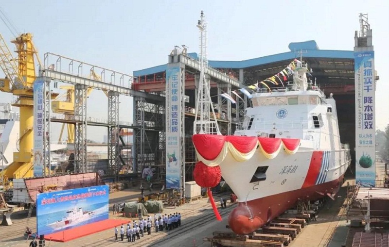 ????此次上船臺的大型海事巡邏船是我國噸位最大、功能最強的公務執(zhí)法船,可搭載多型直升機,具備高海況的跨海區(qū)安全巡航及應急搜救能力,建成后將作為我國深遠海巡航救助一體化指揮旗艦,大幅提升我國海事綜合執(zhí)法水平,以及服務保障船舶航行安全能力。