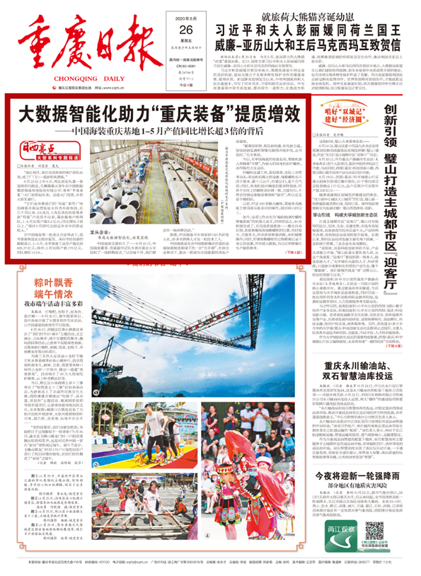 近日,重慶日?qǐng)?bào)頭版頭條以《大數(shù)據(jù)智能化助力“重慶裝備”提質(zhì)增效——中國(guó)海裝重慶基地1-5月產(chǎn)值同比增長(zhǎng)超3倍的背后》,為題對(duì)中國(guó)船舶集團(tuán)旗下中國(guó)海裝進(jìn)行了報(bào)道,文章對(duì)后疫情時(shí)代,中國(guó)海裝如何履行央企責(zé)任,做好“六穩(wěn)”工作,落實(shí)“六保”任務(wù),助力重慶裝備制造業(yè)穩(wěn)步復(fù)蘇,奮力實(shí)現(xiàn)高質(zhì)量發(fā)展的舉措與成效進(jìn)行了深入分析。