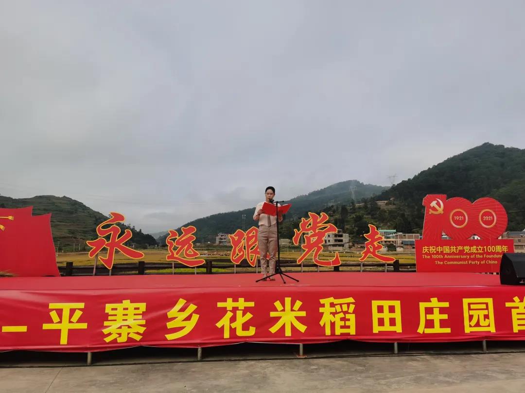 以節(jié)聚勢,以節(jié)聚產(chǎn),以節(jié)聚人,平寨鄉(xiāng)壯族百姓以獨特的方式,慶祝祖國生日,分享豐收喜悅,總結(jié)鞏固脫貧攻堅成果與鄉(xiāng)村振興有效銜接經(jīng)驗,探索綠色發(fā)展、質(zhì)量發(fā)展新思路,實踐對口幫扶、內(nèi)生動力資源增效新方法,構(gòu)建產(chǎn)業(yè)發(fā)展、農(nóng)旅融合鄉(xiāng)村振興新路徑,譜寫平寨發(fā)展新篇章。平寨鄉(xiāng)黨委書記陸華麗在開幕式致辭中指出,舉行花米稻田莊園首屆新米節(jié),是平寨鄉(xiāng)“以節(jié)聚勢,以節(jié)聚人,以節(jié)聚產(chǎn)”的重要舉措。近年來,平寨鄉(xiāng)堅持黨建引領,務實創(chuàng)新的工作作風,各項事業(yè)蓬勃發(fā)展。脫貧攻堅勇創(chuàng)佳績,人居環(huán)境不斷改善,產(chǎn)業(yè)生態(tài)綠色發(fā)展,文化事業(yè)生機勃勃,民族團結(jié)碩果累累,為鄉(xiāng)村振興戰(zhàn)略的實施打下了良好的基礎。