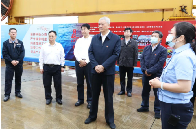 調(diào)研期間,中央主題教育第42指導(dǎo)組組長(zhǎng)王壽君、副組長(zhǎng)房德權(quán),成員程建宏、項(xiàng)紫君、仇國(guó)歡一行深入黃埔文沖科研生產(chǎn)現(xiàn)場(chǎng),登上在建重點(diǎn)船舶,詳細(xì)了解重點(diǎn)項(xiàng)目產(chǎn)品性能、技術(shù)優(yōu)勢(shì),聽(tīng)取了關(guān)于設(shè)計(jì)研發(fā)、創(chuàng)新改進(jìn)、生產(chǎn)建造過(guò)程的介紹。指導(dǎo)組一行還走進(jìn)黃埔文沖廠史館,了解黃埔文沖170多年的發(fā)展歷程。
