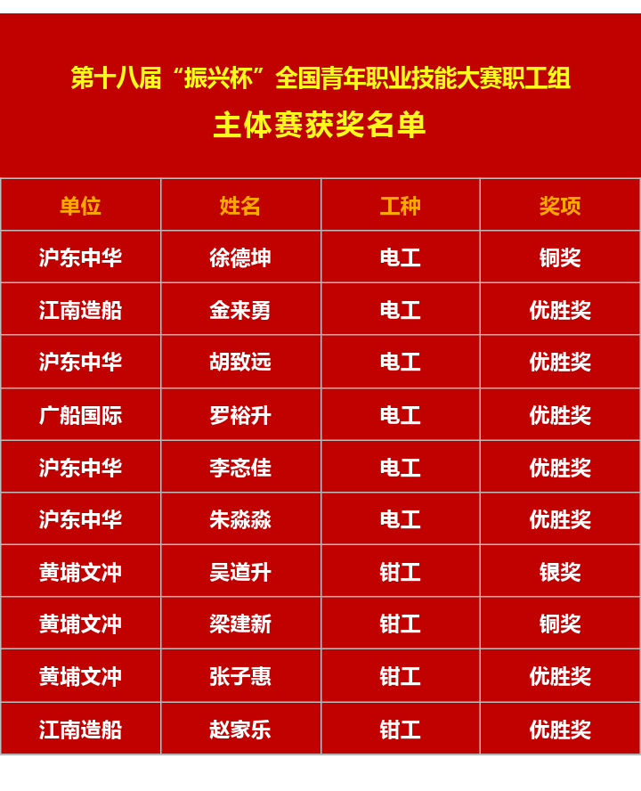 11月15日,第十八屆“振興杯”全國青年職業(yè)技能大賽職工組全國決賽在沈陽落下帷幕,中國船舶集團(tuán)青年取得主體賽(職業(yè)技能競賽)“1銀2銅7優(yōu)勝獎”、專項(xiàng)賽(創(chuàng)新創(chuàng)效競賽)“1銀3銅4優(yōu)勝獎”的好成績。其中,黃埔文沖吳道升、七〇七所“低噪聲小型化長航時(shí)高精度激光慣導(dǎo)技術(shù)”項(xiàng)目分獲銀獎,在“青春競技場”上展現(xiàn)了船舶青年的自信卓越風(fēng)采。