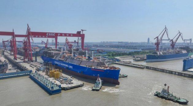 8月9日,中國船舶集團旗下滬東中華3艘第五代LNG船生產節點告捷,實現2船出塢、1船開工三大生產節點。