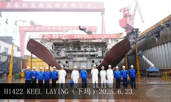在該船的船建造過程中,建造團隊齊心協(xié)力,與船東船檢密切合作,合理調(diào)配生產(chǎn)資源,統(tǒng)籌物流,確保分段按計劃及時供應(yīng),順利完成了總段塞軸裝槳及泵艙完整性目標(biāo)。目前,該船關(guān)鍵路徑分段已全部配齊,整船分段結(jié)構(gòu)全部完工,為下塢后的快速搭載創(chuàng)造了有利條件。